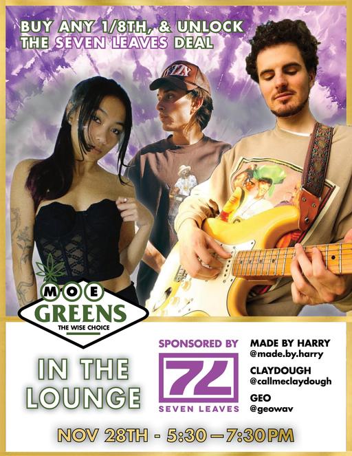 Black Friday can often feel like a race for discounts, but at Moe Greens, it’s about more than just sales — it’s about celebration. On Black Friday, the dispensary’s iconic consumption lounge will transform into a vibrant post-holiday sanctuary, featuring a live performance by Yee Section. Known for their eclectic sound and infectious energy, Yee Section will bring a dose of rhythm, creativity, and positivity to the lounge, filling the space with good vibes for everyone who stops by.